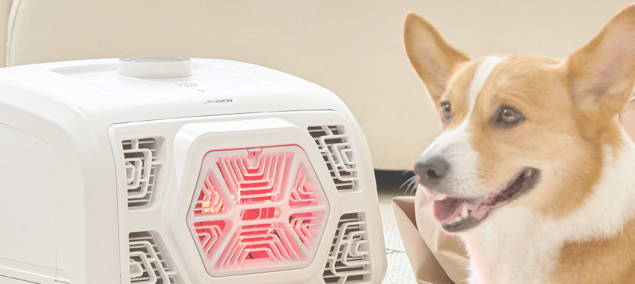 AbsFur is a pet dryer designed to be very safe. The PTC heater installed inside creates lukewarm air of +4℃ compared to the outside temperature, so there is no risk of burns in close use, and the infrared lamp is protected by a heat-resistant plastic cover to prevent burns.