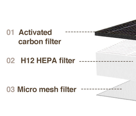 Among the two filters installed in the product, the micro mesh filter can be separated and used semi-permanently after washing with water. It is recommended to replace the carbon HEPA filter for air cleaning once every 6 months, and if you use it once a month to remove large dust attached to the filter surface, you can maintain better performance. Cleaning methods are described in detail in the user manual.