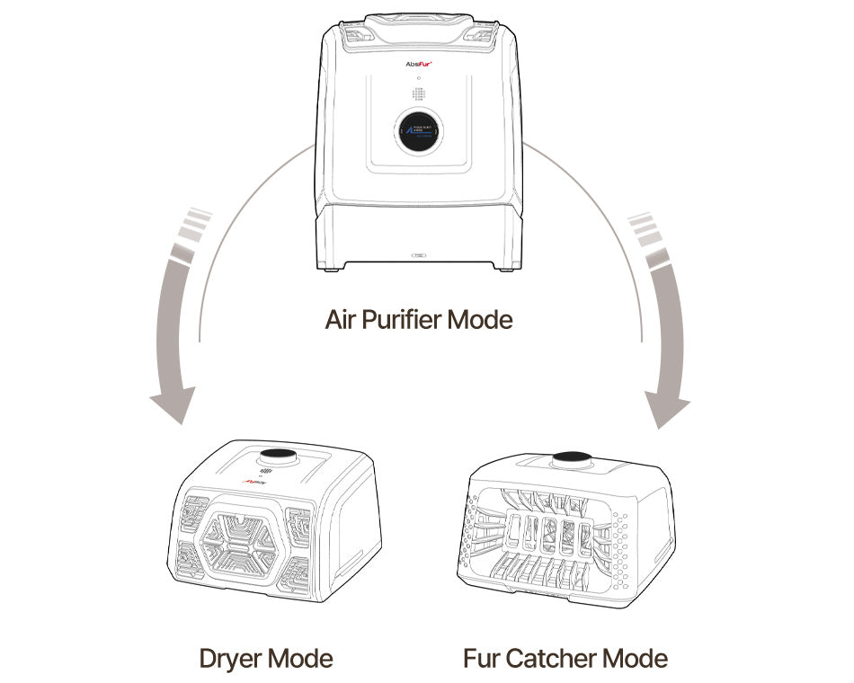 Abspur heats the air with the PTC heater inside to create warm air, while the radiant heat from the near-infrared lamp makes pets feel cozy. The temperature of the discharged air creates a lukewarm wind of +4℃ compared to the outside temperature, and as an exposure type dryer, a separate temperature control function is not included.