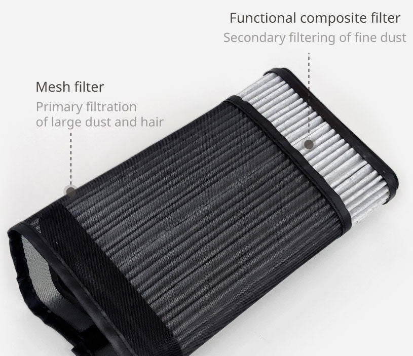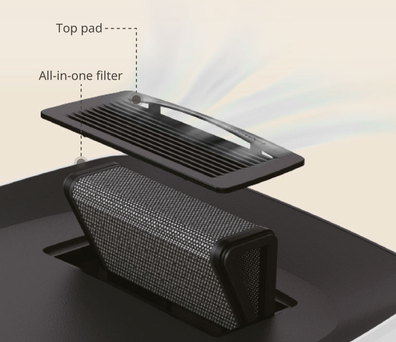 The upper pad has an all-in-one filter built into it, so foreign substances and dust flying drying are filtered from the top, creating optimal air quality.