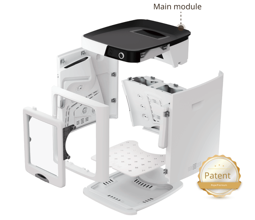 The patented fully detachable structure allows all six sides to be detached, allowing all parts except the main module to be easily washed with water.