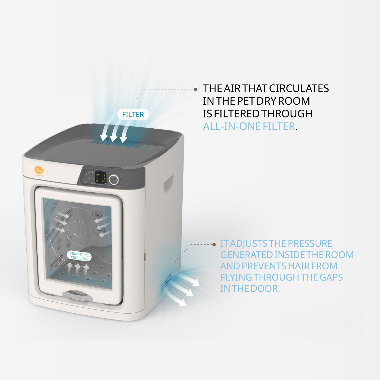 This function makes the inside of the dry room cool and comfortable. This mode is for hot summer months or for pets that feel a lot of heat.