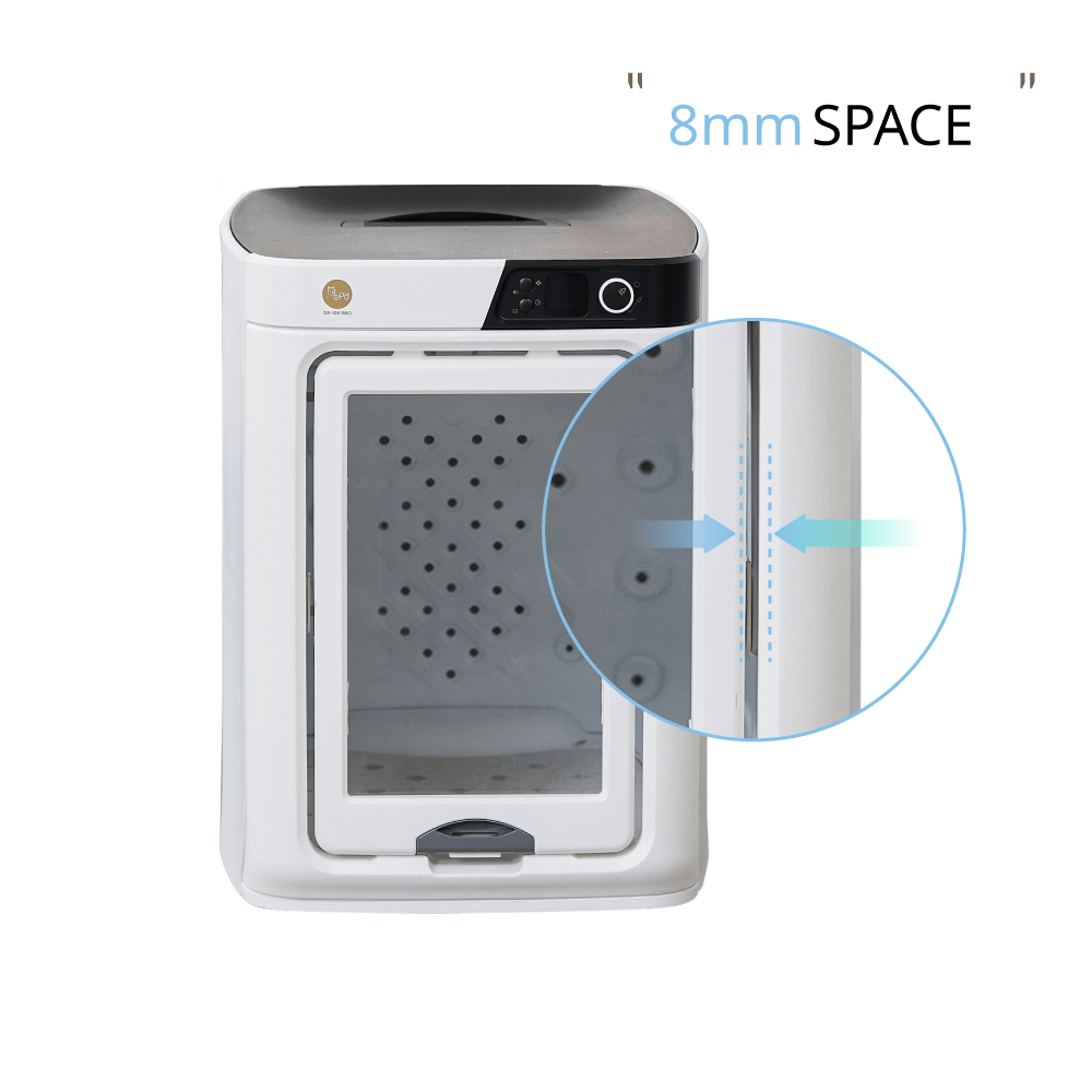 Allows pet owner and pets to interact easily and 8 mm gap allows external environment to stay connect with pet while drying in comfort pet dry room.