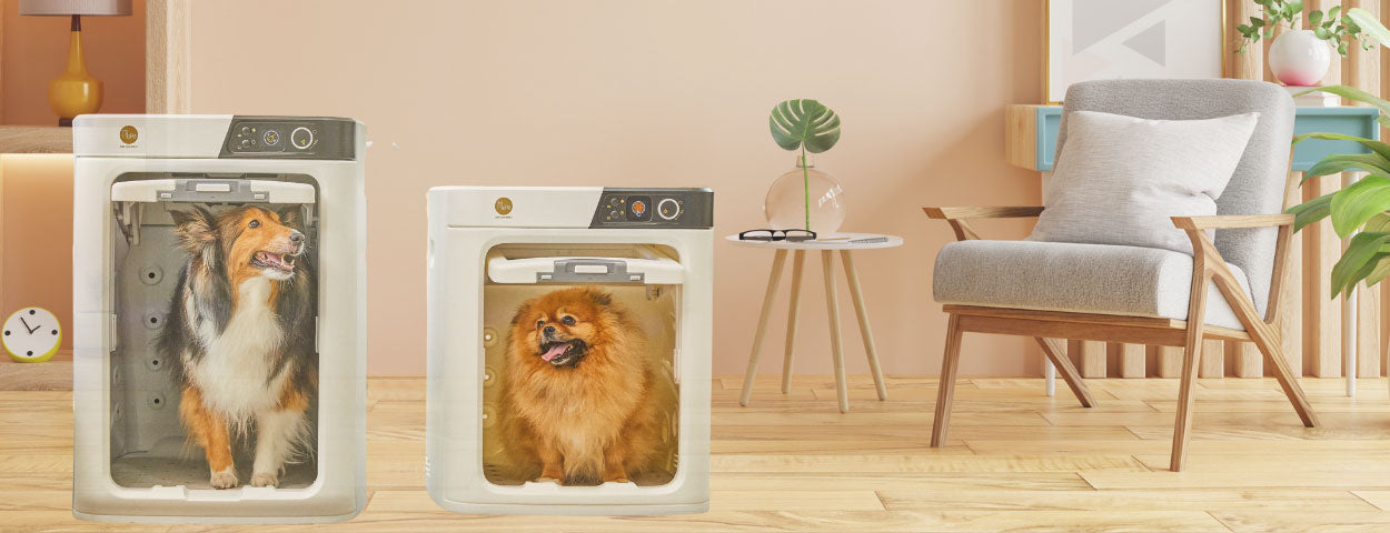 PEPE Pet Dry Room minimizes the stress with the help of white noise technology and air circulation which does not blows the wind directly in the pet's face. Plus, the patented shutter-type sliding door which can be use as a pet house, leaving the door open and letting the pet to adapt to the product. If the pet refuses to use the dry room, let them take a break, enjoy and be familiarized with it first, then you will see them going inside the dry room when they already feels comfortable with it.